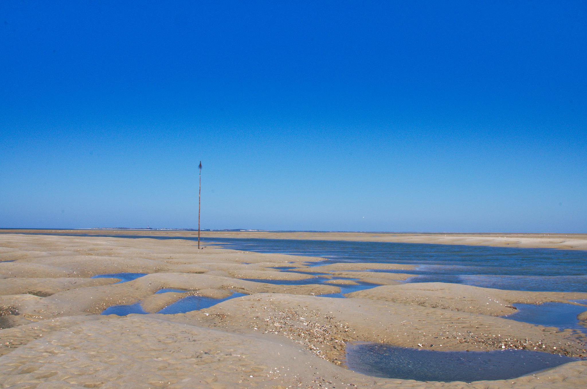 An der Fahrrinne am Nordende der Insel. Starke Strömung hat tiefe Kuhlen hinterlassen.