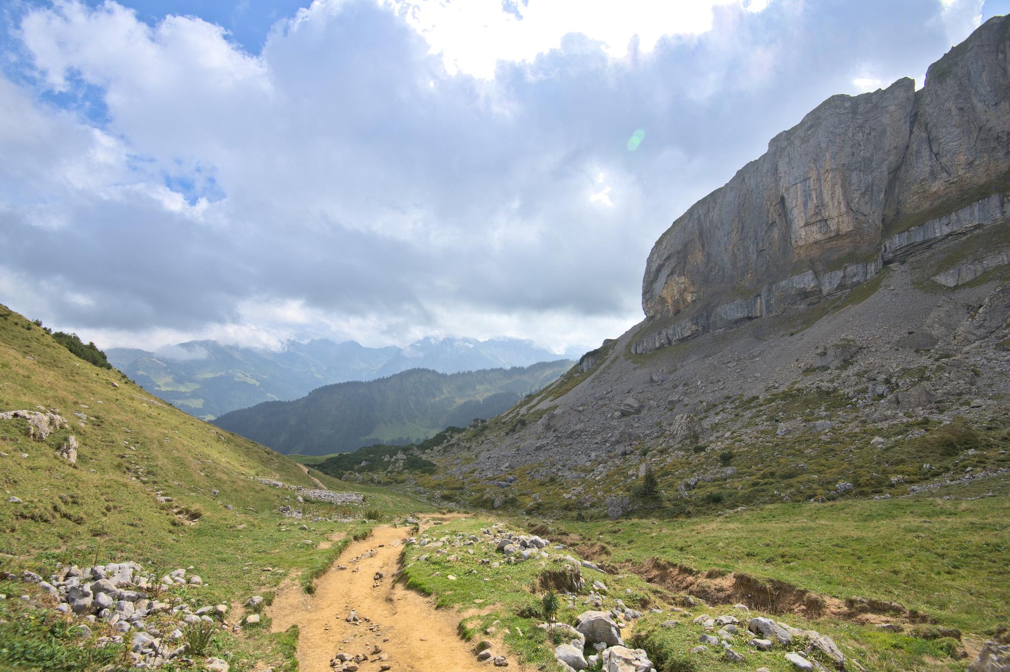 Aufstieg am Ifen vorbei in Richtung Gottesackerplateau und Gottesackerwände.