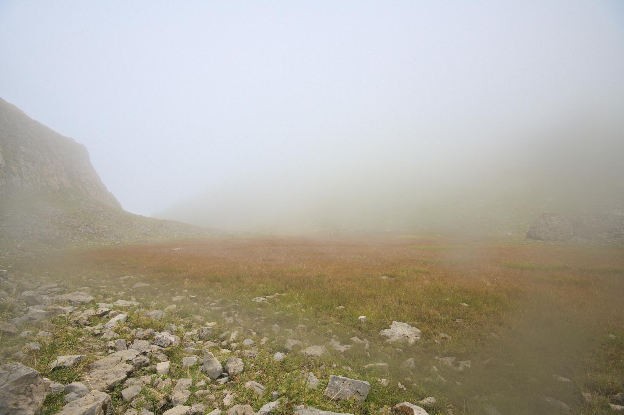 Abstieg im Nebel, die Gottesackerwände sind uns leider verborgen geblieben.