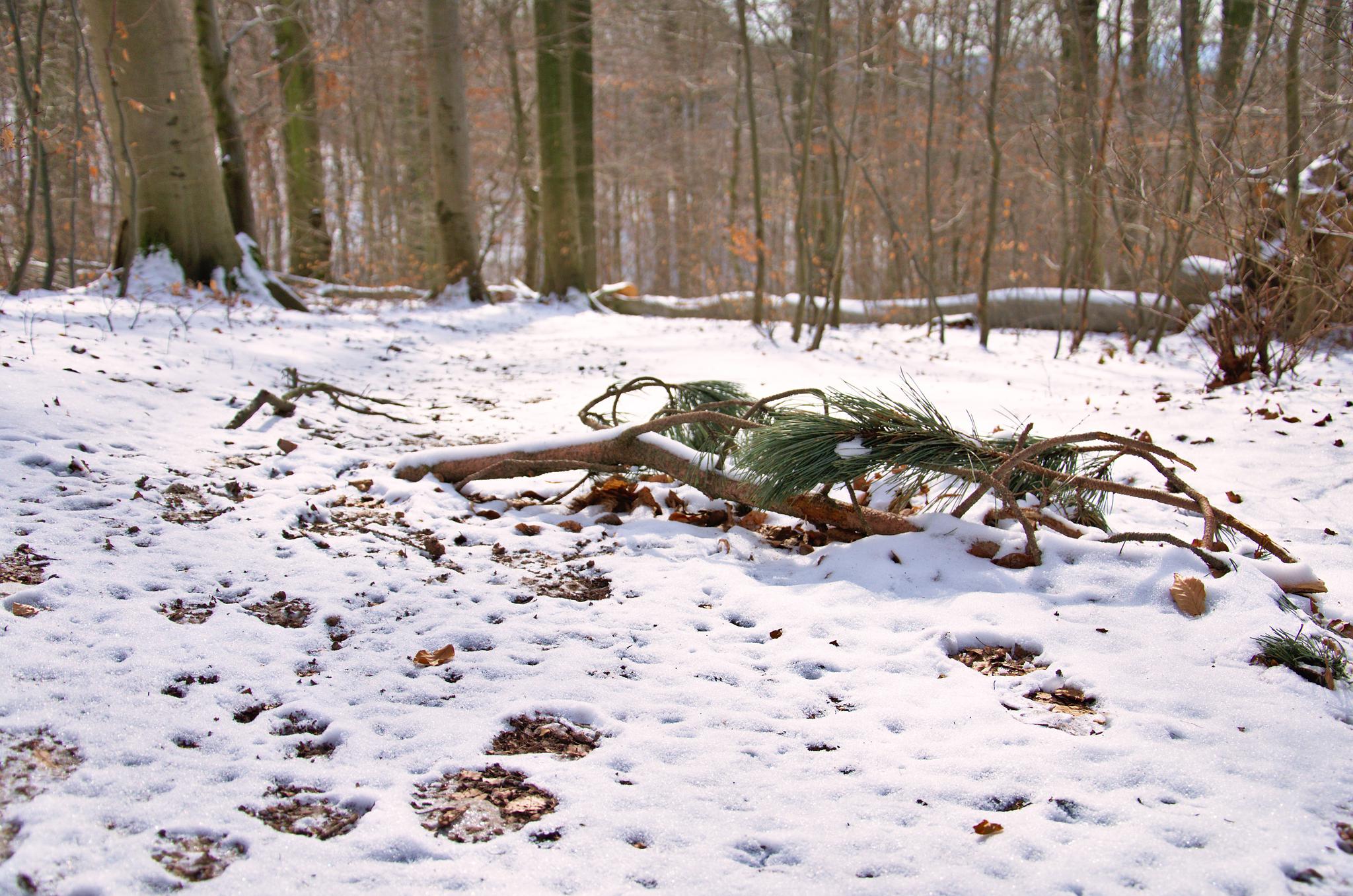 Der (hoffentlich) letzte Schee im Weender Wald bevvor der Frühling beginnt.